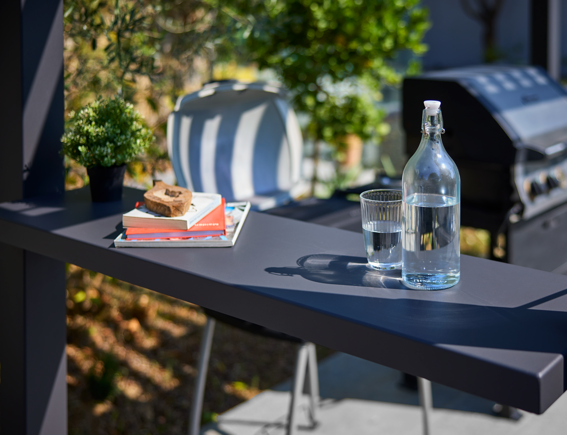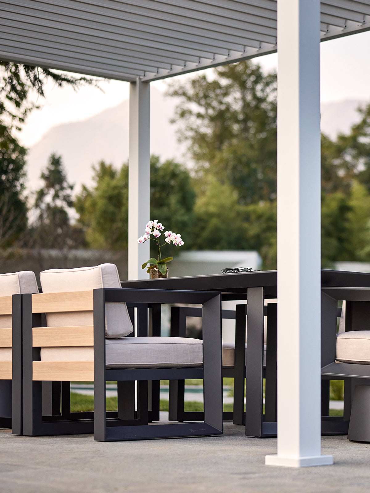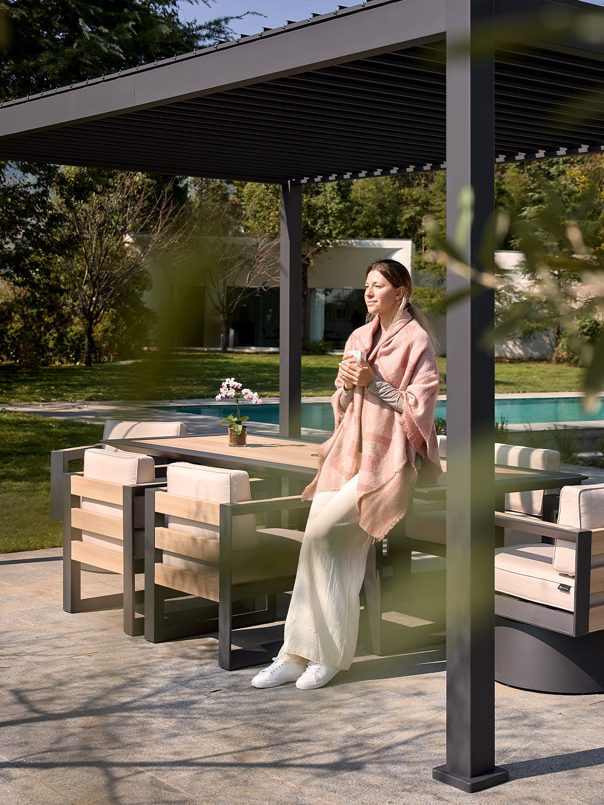 Crafted from premium aluminium, it boasts an adjustable louvered roof that allows you to control the amount of sunlight or shade you desire.