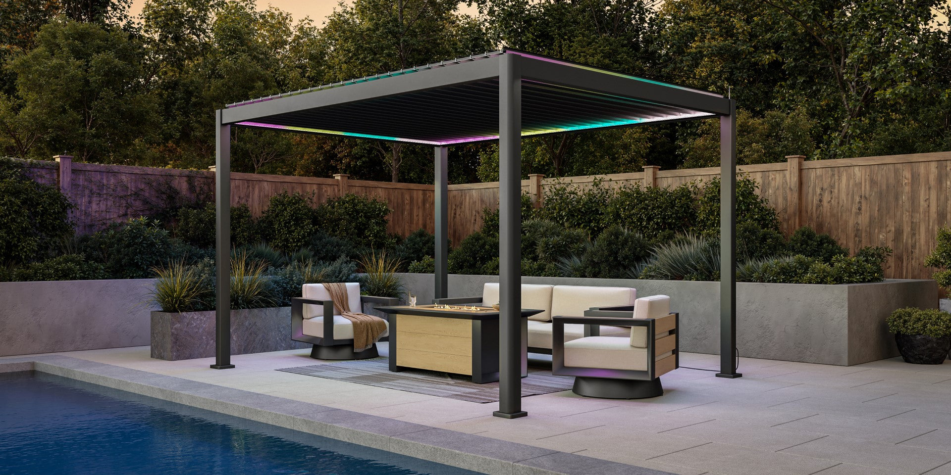 The Mirador louvered pergola is a beautiful blend of strength and elegance, crafted from premium aluminum and steel. These high-quality materials ensure a sturdy structure that can withstand various weather conditions while maintaining its aesthetic appeal. The aluminum provides a lightweight yet durable framework, while the steel enhances the pergola's robustness, making it a long-lasting addition to your outdoor space. So, when you're lounging under the Mirador pergola, you're not just under any pergola, but one that's built with top-notch materials designed to stand the test of time.