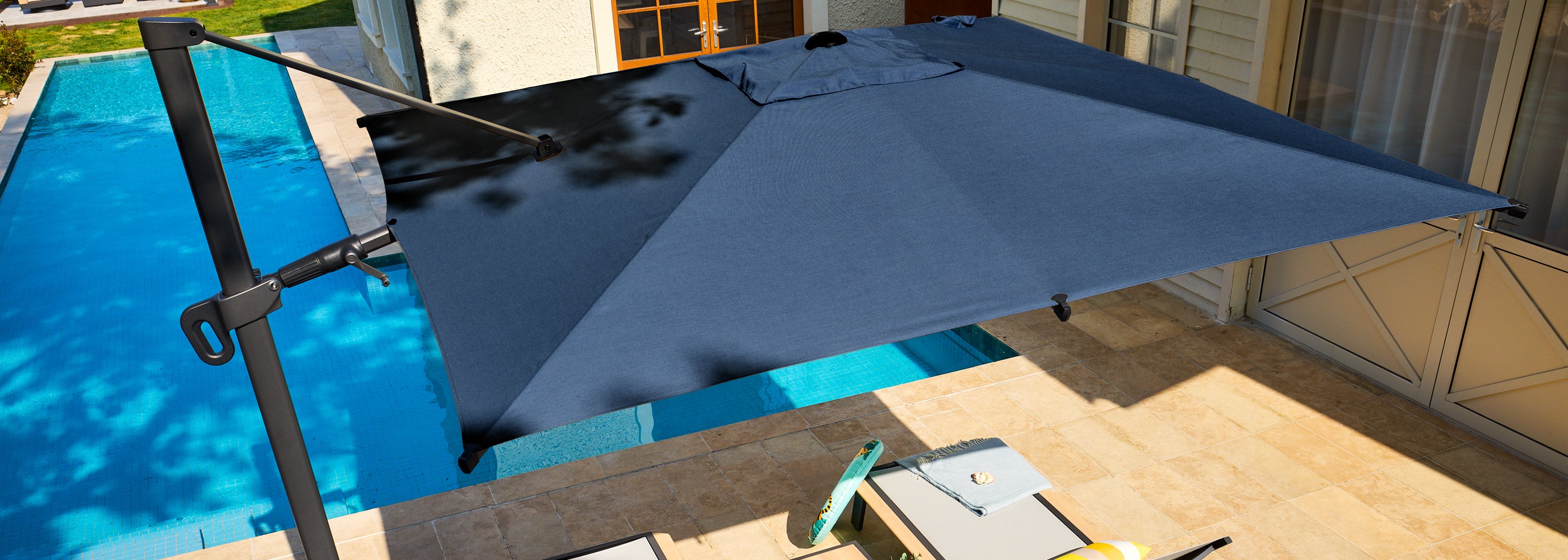 Meet the Novara Cantilever Umbrella, winner of the Red Dot “Best of the Best” Award. This modern shade solution blends a crisp, contemporary silhouette with clever engineering you can feel every time you use it. Simply turn the conical grip to dial in the perfect horizontal tilt. It's smooth, precise, and effortless. No tugging, no tampering, no extra force.