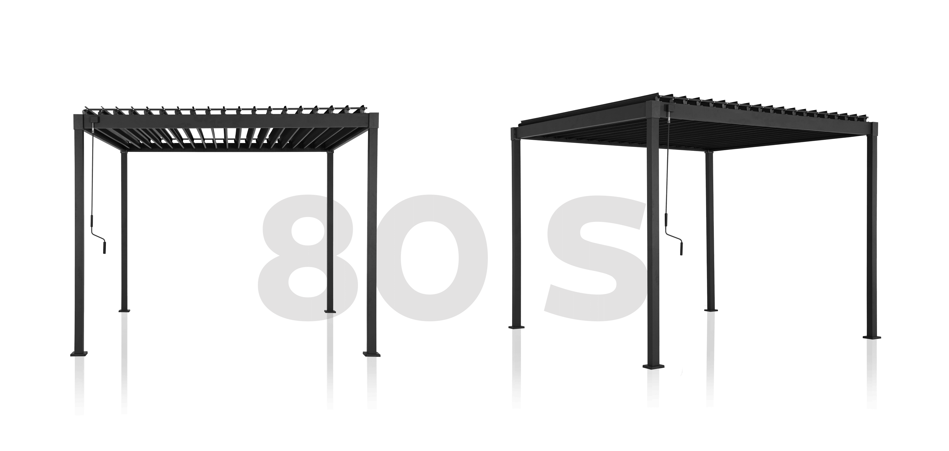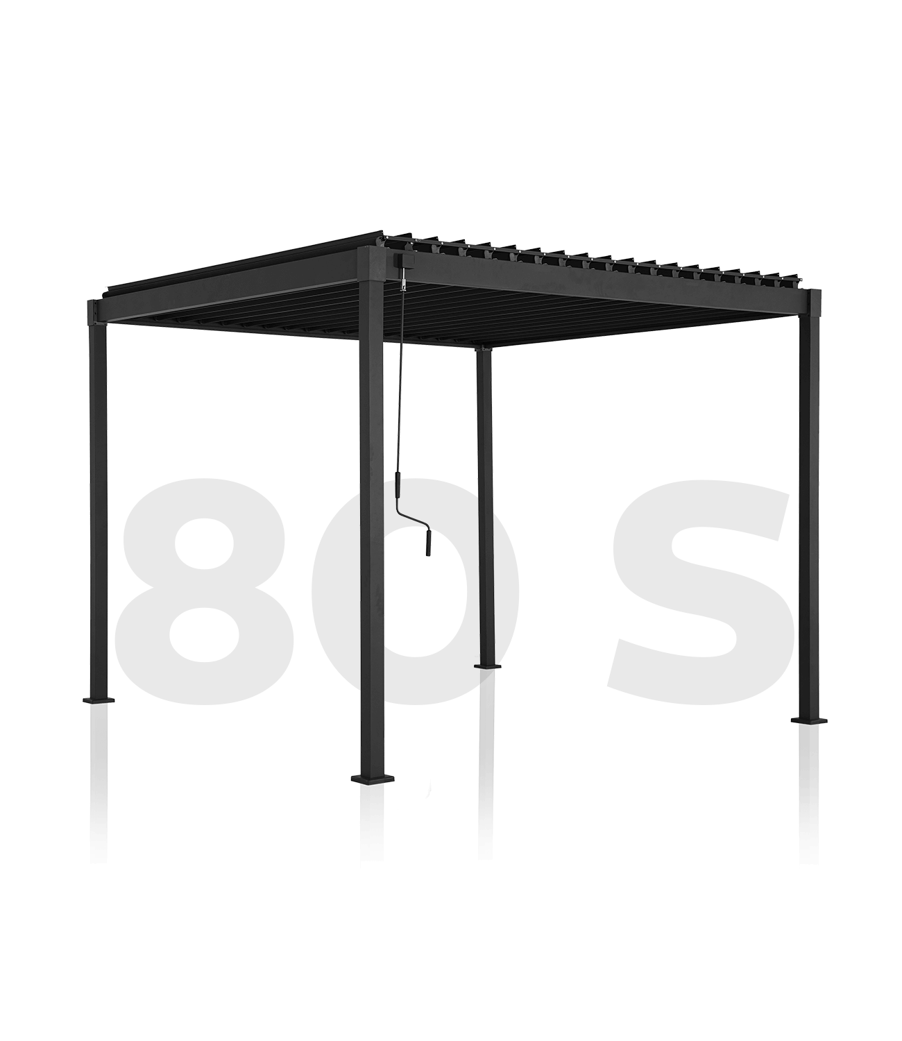 Verleihen Sie Ihrem Garten, Poolbereich oder Ihrer Terrasse mit unserer bioklimatischen Pergola 80S einen modernen Touch. Mit ihrer kompakten Grundfläche von 3 x 3 Metern ist sie ideal für gemütliche Treffen mit vier bis sechs Gästen. Das vielseitige Design mit Lamellendach lässt sich dank eines benutzerfreundlichen Tragesystems mühelos öffnen und schließen. Im Handumdrehen wechseln Sie von voller Sonne zu Halbschatten. An warmen Tagen können Sie die Luftzirkulation erhöhen und abends den Sternenhimmel genießen. Die ineinandergreifenden Lamellen sorgen für eine wetterfeste Abdichtung und halten Sie bei leichtem Regen trocken, während das Wasser von der Pergola abgeleitet wird. Gefertigt aus hochwertigem, verzinktem Stahl, trotzt sie den Elementen und bietet Ihnen jahrelange Freude. Auch der Aufbau ist kinderleicht – Sie benötigen kein Spezialwerkzeug, sodass Sie Ihre Pergola im Handumdrehen genießen können.