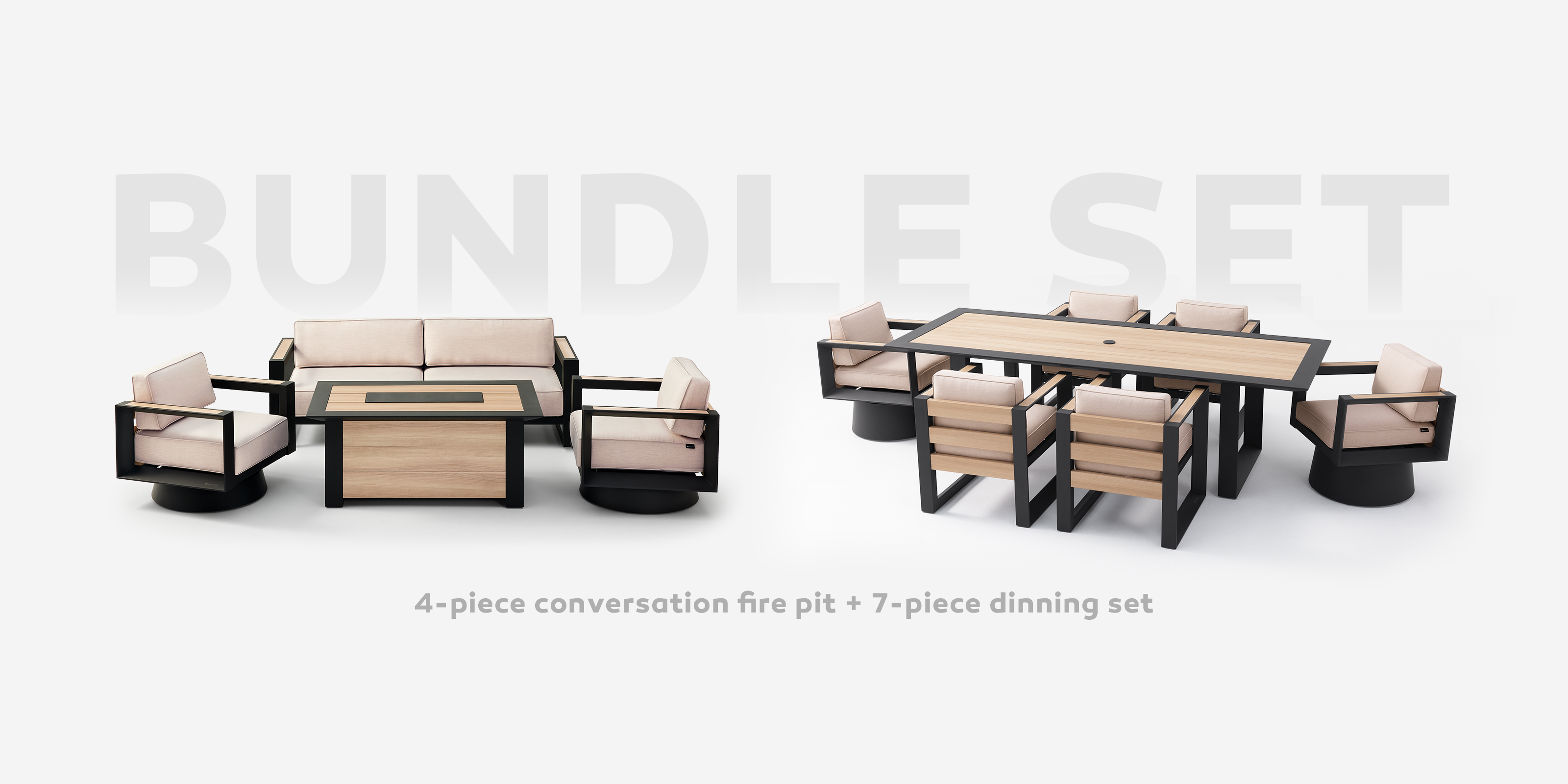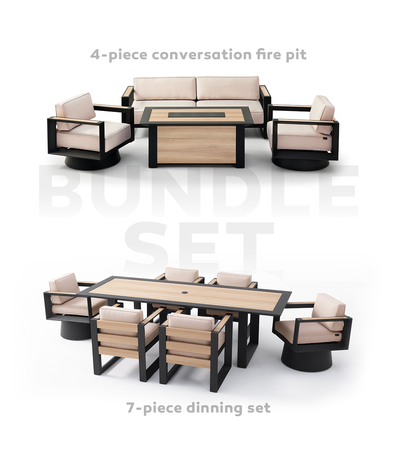 Machen Sie sich bereit für unvergessliche Momente im Freien! Dieses Set beinhaltet die Mirador 4-teilige Feuerstelle und die 7-teilige Essgruppe. Bequeme Sitzgelegenheiten und ein gemütliches Feuer laden zum stilvollen Genießen von Mahlzeiten und angeregten Gesprächen ein.