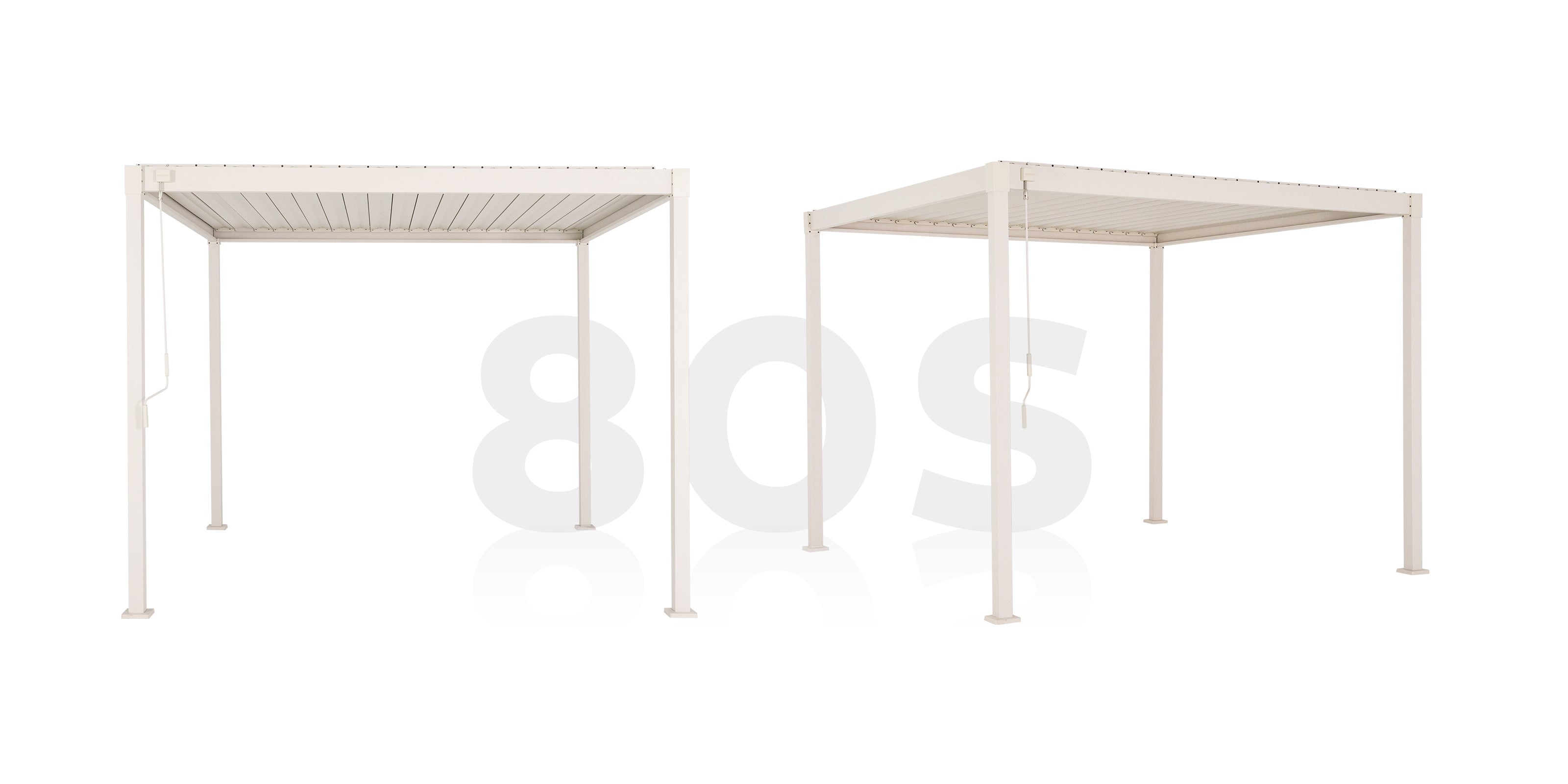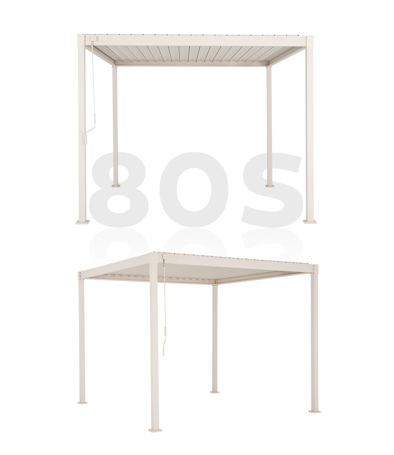 Verleihen Sie Ihrem Garten, Poolbereich oder Ihrer Terrasse mit unserer bioklimatischen Pergola 80S einen modernen Touch. Mit ihrer kompakten Grundfläche von 3 x 3 Metern ist sie ideal für gemütliche Treffen mit vier bis sechs Gästen. Das vielseitige Design mit Lamellendach lässt sich dank eines benutzerfreundlichen Tragesystems mühelos öffnen und schließen. Im Handumdrehen wechseln Sie von voller Sonne zu Halbschatten. An warmen Tagen können Sie die Luftzirkulation erhöhen und abends den Sternenhimmel genießen. Die ineinandergreifenden Lamellen sorgen für eine wetterfeste Abdichtung und halten Sie bei leichtem Regen trocken, während das Wasser von der Pergola abgeleitet wird. Gefertigt aus hochwertigem, verzinktem Stahl, trotzt sie den Elementen und bietet Ihnen jahrelange Freude. Auch der Aufbau ist kinderleicht – Sie benötigen kein Spezialwerkzeug, sodass Sie Ihre Pergola im Handumdrehen genießen können.