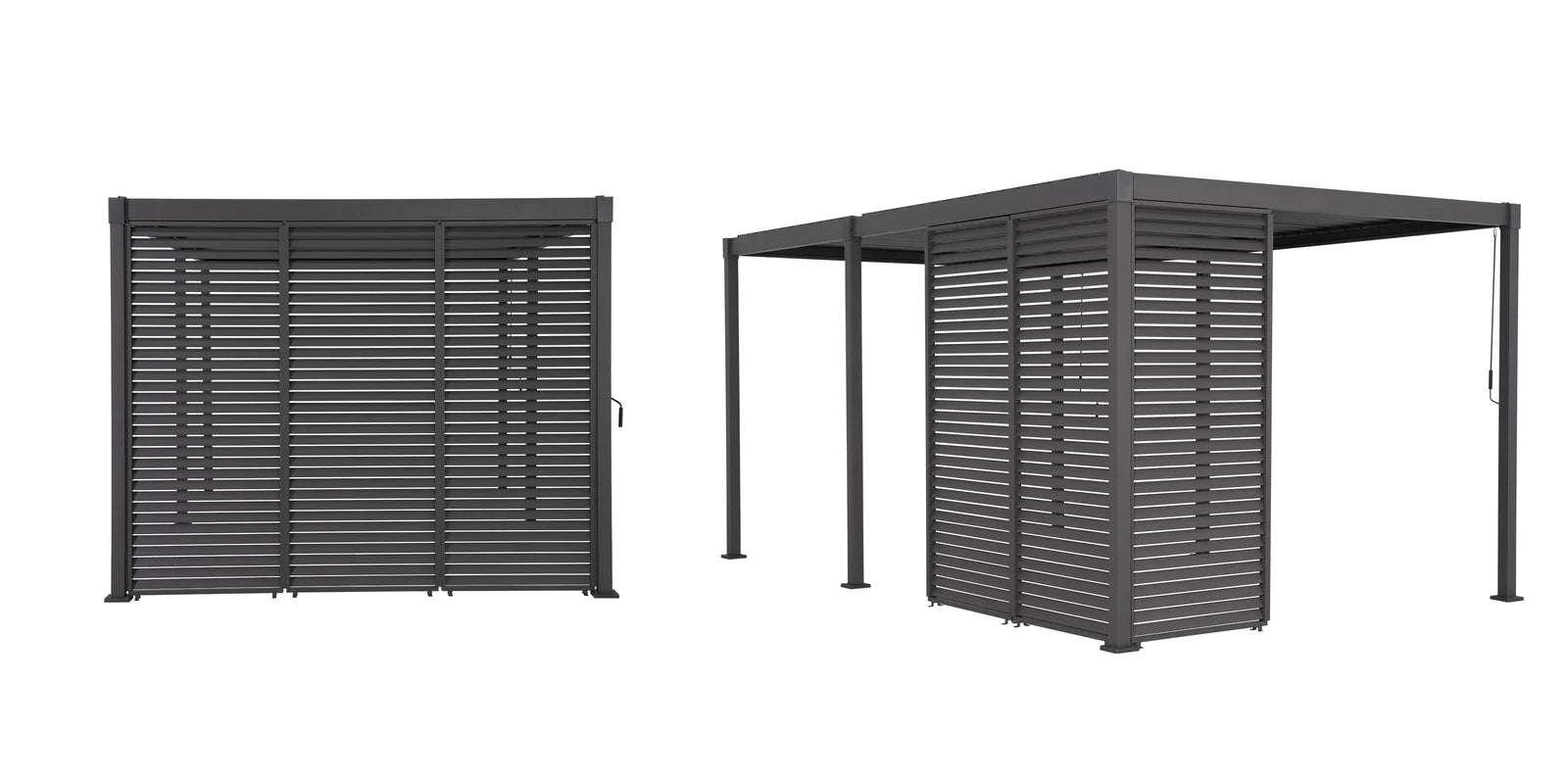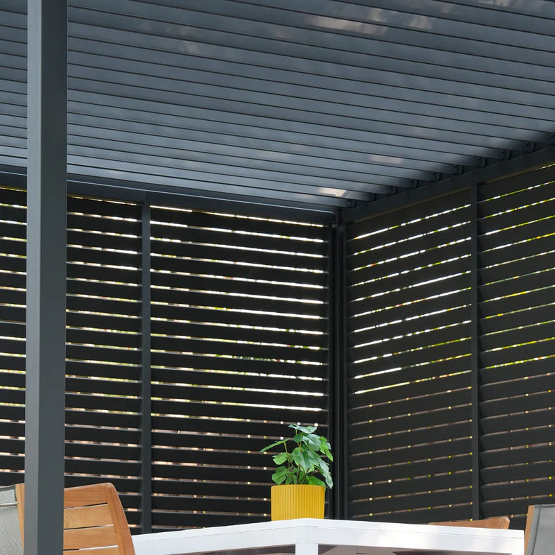 Upgrade your Mirador 80S or 88S pergola with this elegant fixed shutter wall. Beautifully crafted louvers provide adjustable privacy, shade, and ventilation control. Crafted from durable, corrosion-proof aluminum and galvanized steel, it's built to withstand the elements, bringing you year after year of enjoyment. It’s custom-designed for a perfect fit and color-matched finish on your Mirador 80S or 88S pergola. Installation is simple and easy — no special tools are required. So, you can create the ideal outdoor hangout in just minutes.