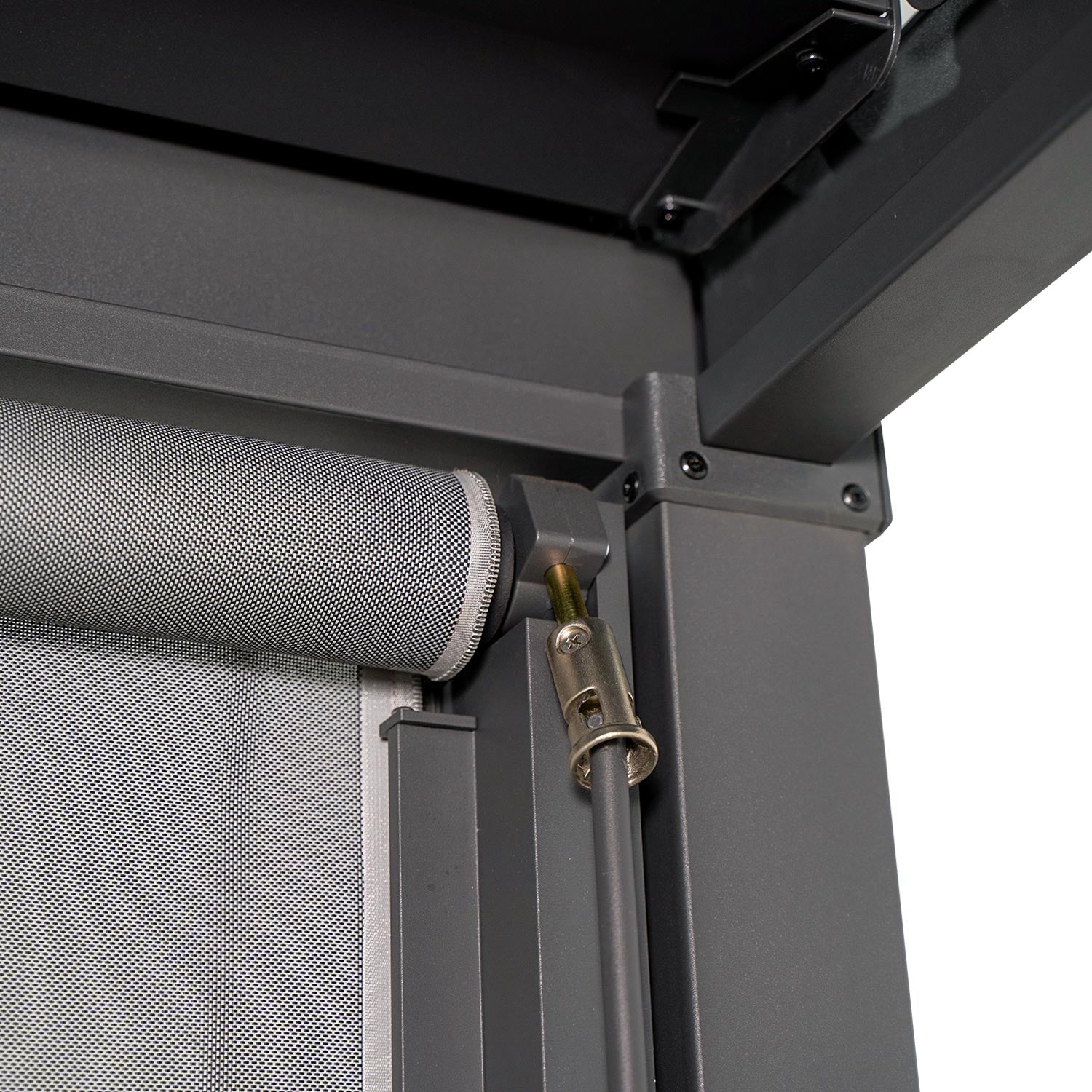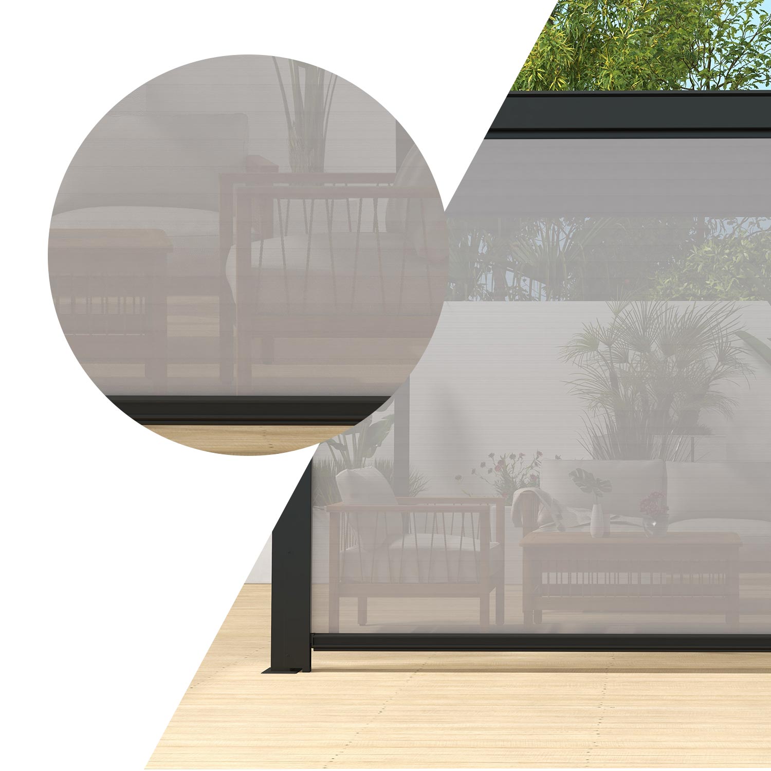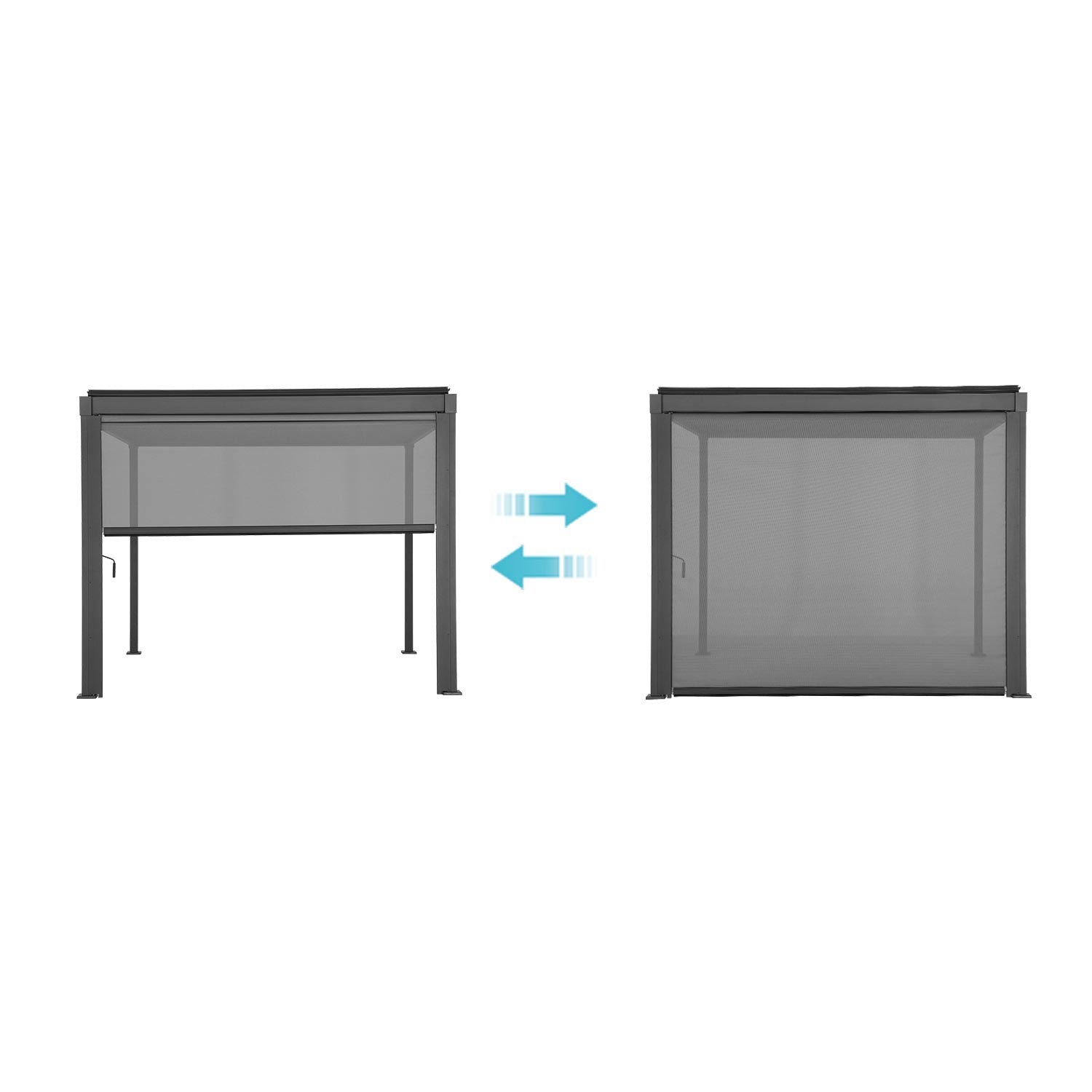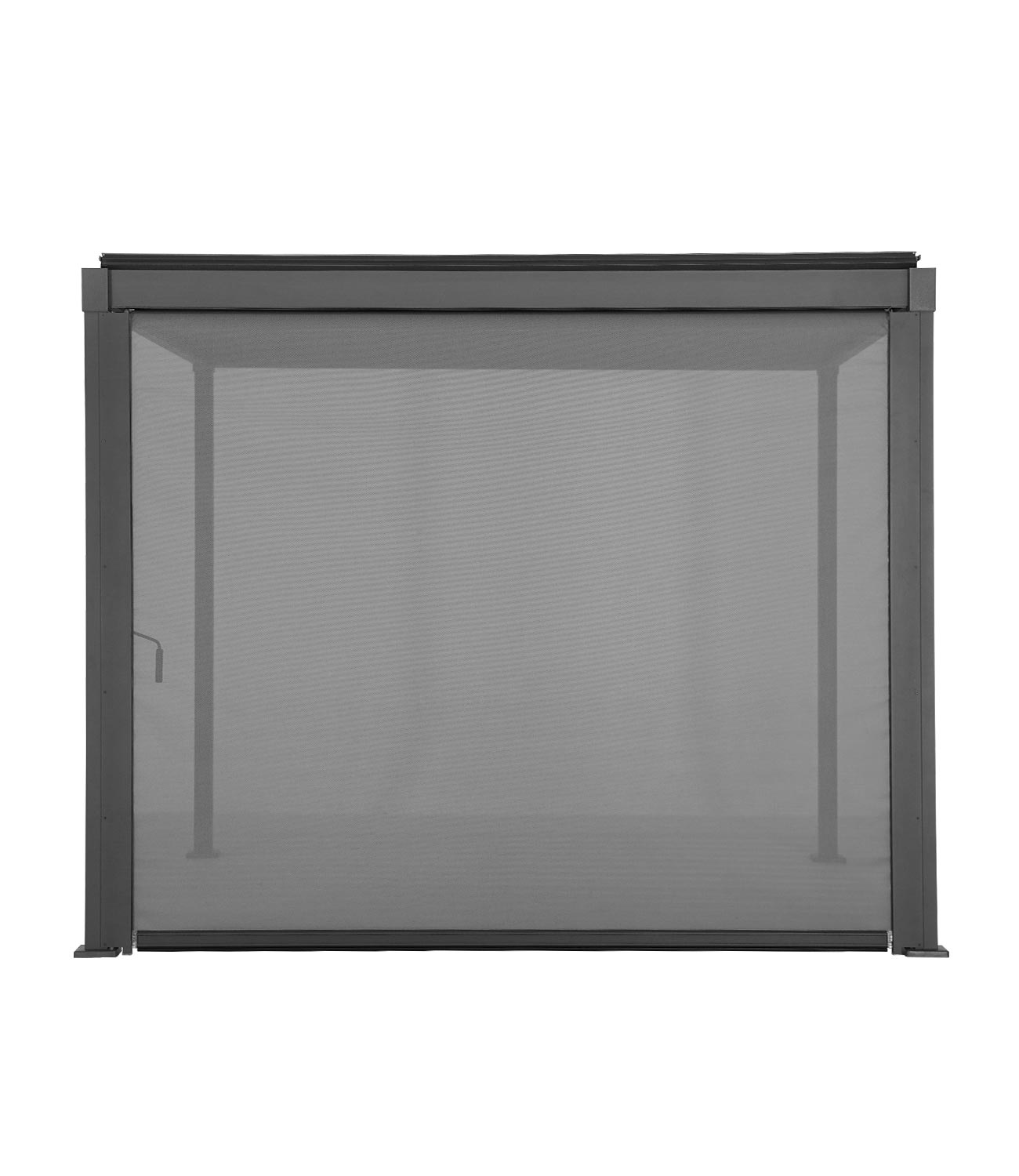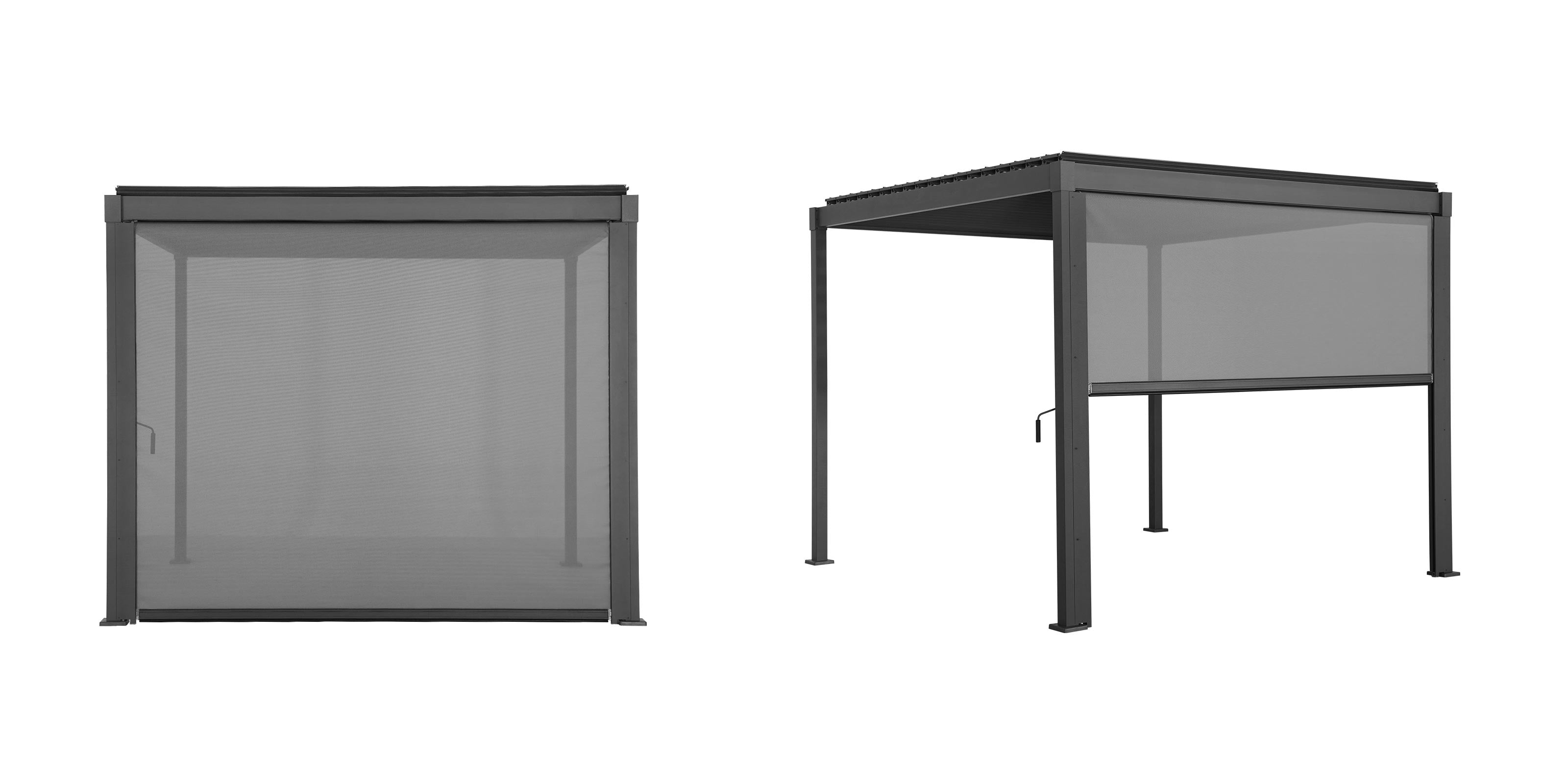 Our Side Shade Screen is custom-built to add extra protection and comfort to our 80S and 88S pergolas. Crafted with UV-resistant, breathable Texteline fabric, it shields you from harsh rays, gusty winds, and, of course, nosy neighbors. So, your backyard will become serene and secluded retreat. It’s totally adjustable. Simply raise or lower it with a turn of the crank that already comes with your Mirador pergola. And with its sleek charcoal black hue, you can rest assured that it’ll look good too!