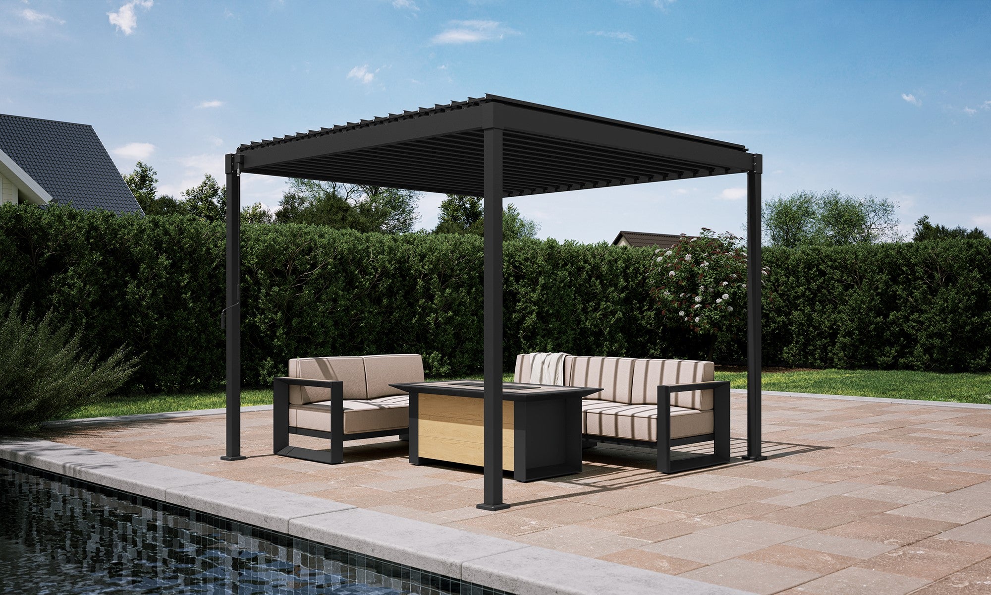 Bring modern style to any backyard, poolside or patio with our 80S bioclimatic pergola. Its intimate 10x10 footprint makes it ideal for hosting intimate gatherings of four to six guests. Designed for versatility, its louvered roof opens and closes easily via a user-friendly sling system. In seconds you can transition from full sun to partial shade. On warm days you can increase airflow. At night, you can gaze at the stars. Interlocking louvers create a weather-tight seal, keeping you dry in light rain while water is channeled away from the pergola. Made from high-grade galvanized steel, it is built to withstand the elements, bringing you years of enjoyment. Setup is hassle-free too — no special tools are needed for assembly, so you’ll be enjoying more in no time.
