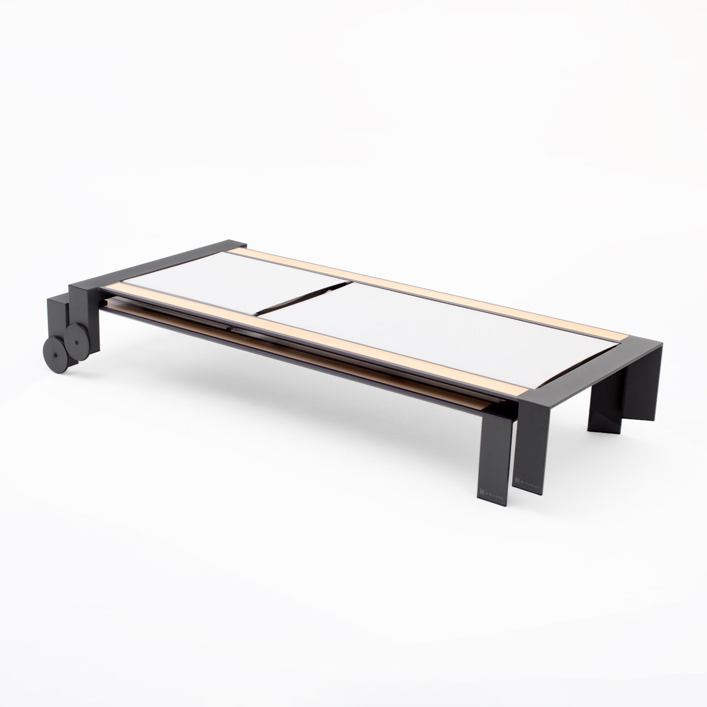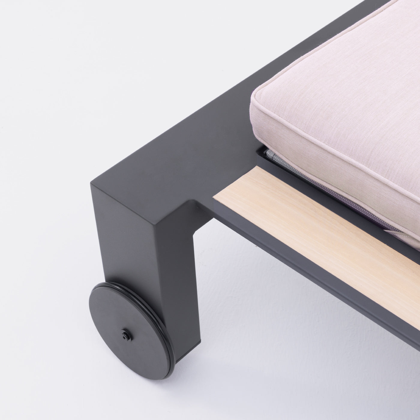 The stackable chaise lounges are complemented by the ease of mobility provided by the large wheels. Making storage compact and effortless.