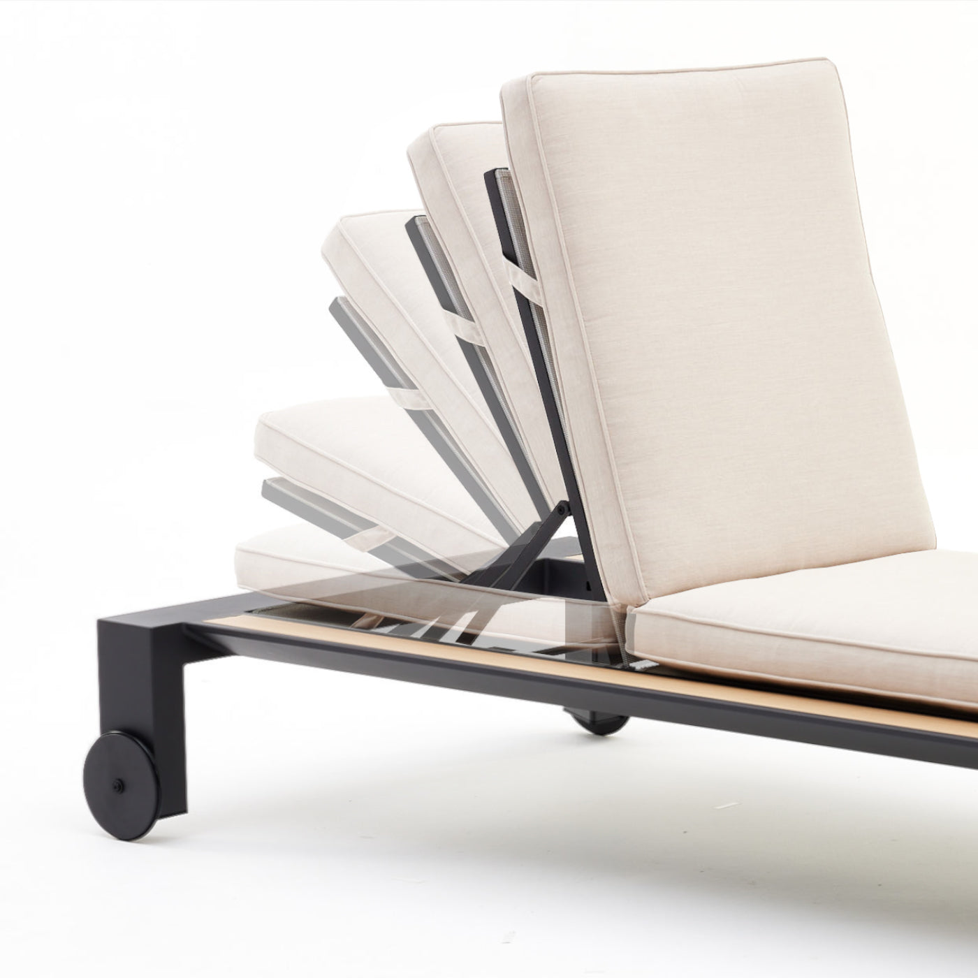 The chaise lounge with an adjustable backrest providespersonalized comfort for activities like reading and sunbathing.
