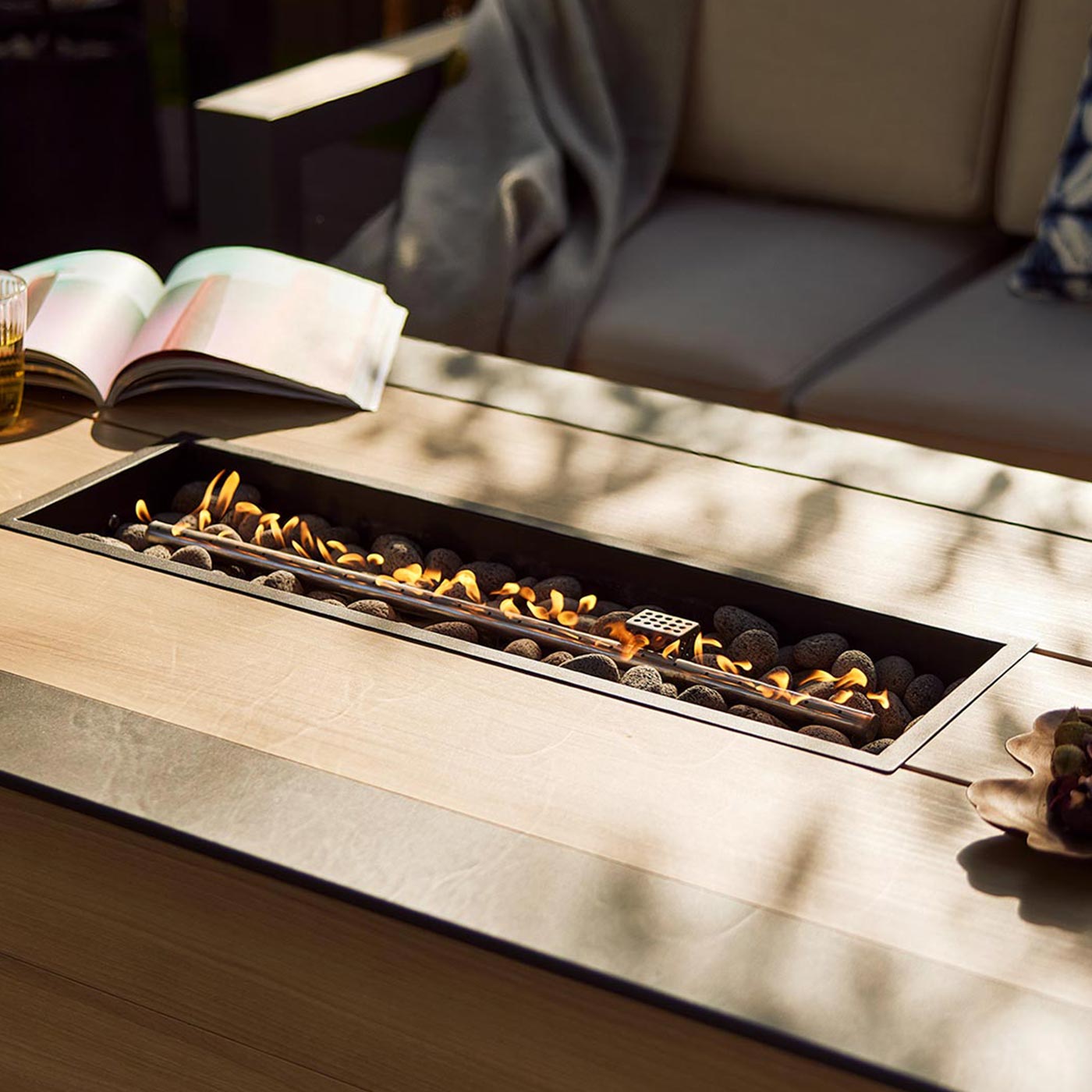 The propane firepit table offers a convenient and romantic way to enjoy warmth and ambiance without the hassle.