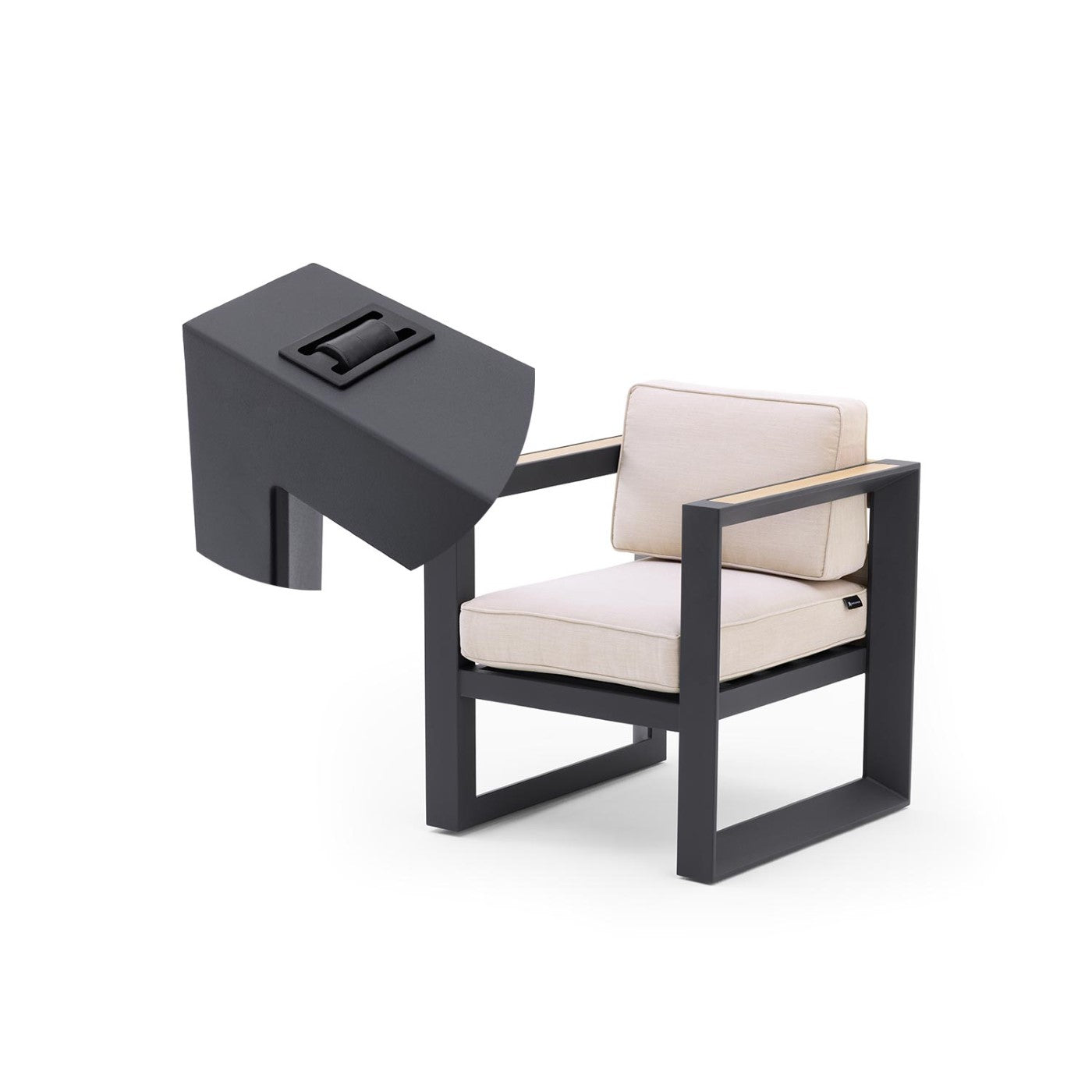 The chaise lounge frame is robust and substantial, serving as a practical table surface for holding beverages, snacks, or books during your time in the sun.