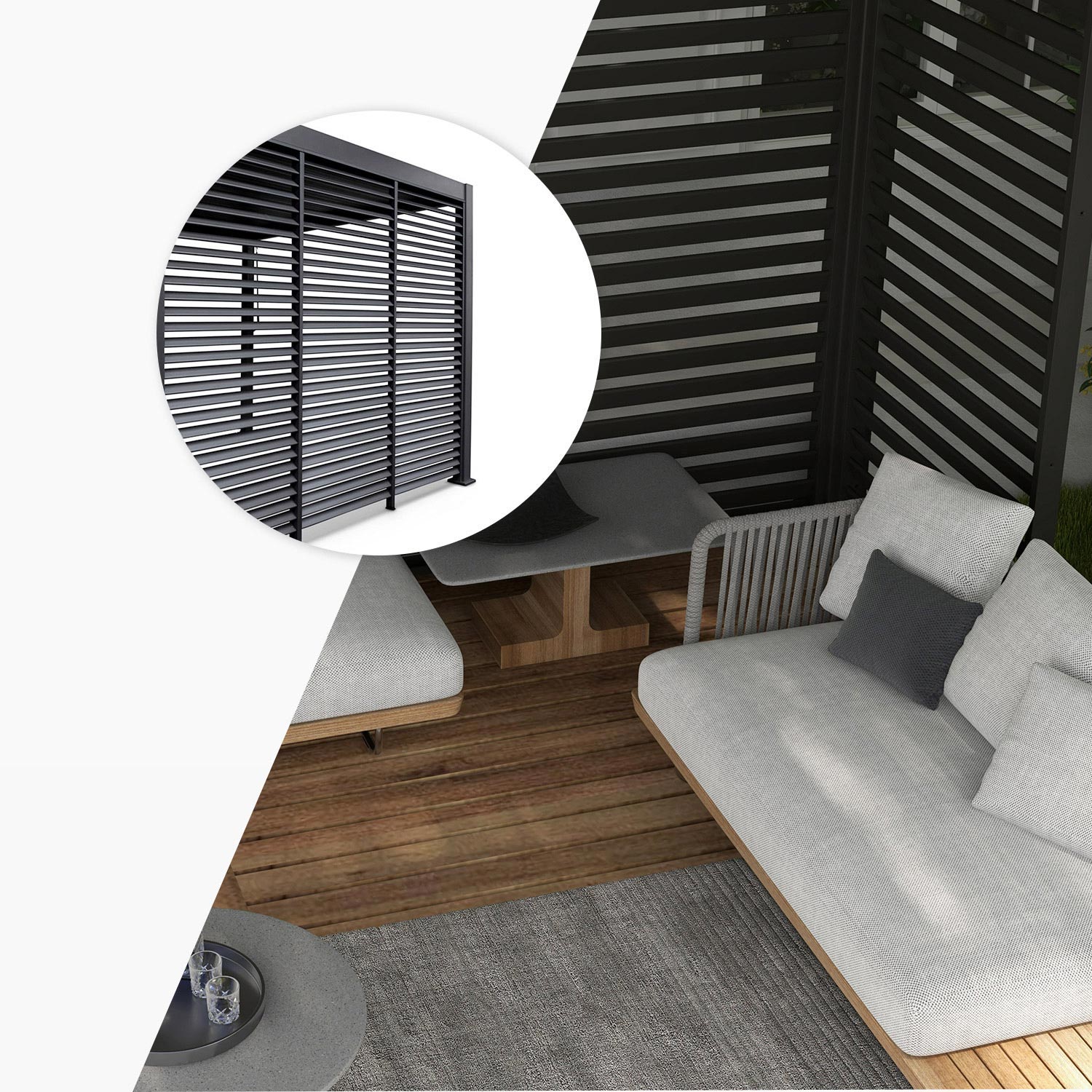 Upgrade your Mirador pergola with this louvered wall attachment. Constructed from high-grade powder-finished aluminum, this stylish accessory adds extra privacy while blocking excessive sunlight and wind. With three, six, or nine panels, you can bring an extra layer of design and functionality to your outdoor space. Choose from a line of color options to match your Mirador pergola.