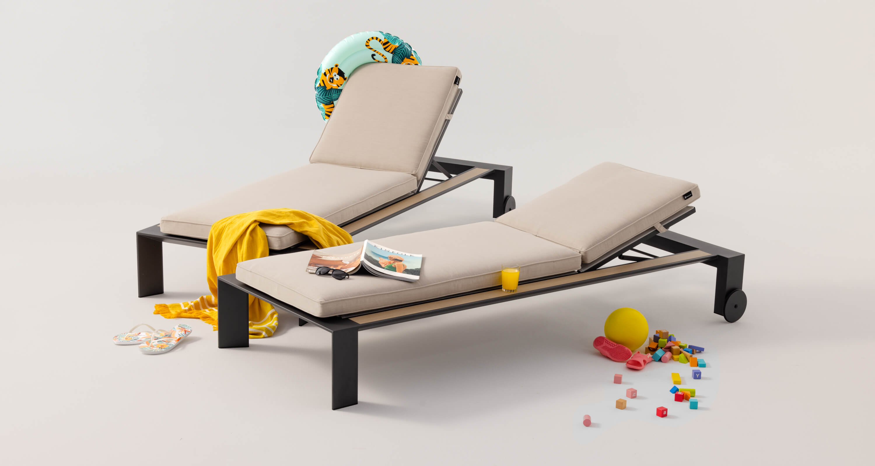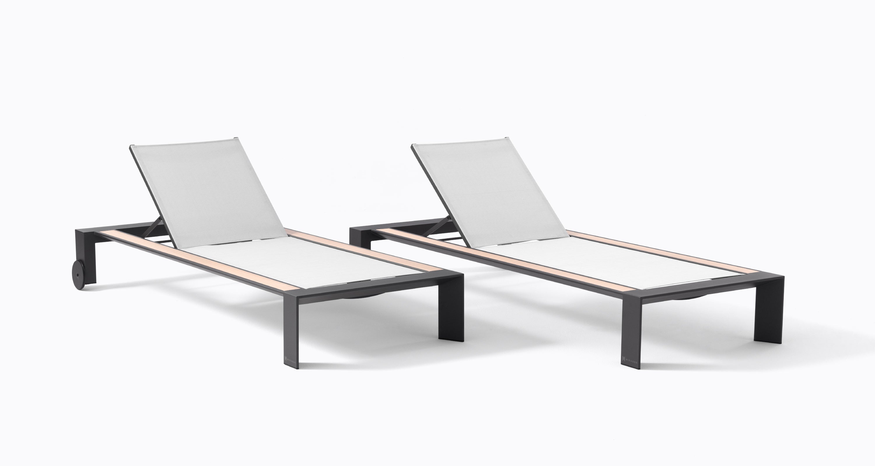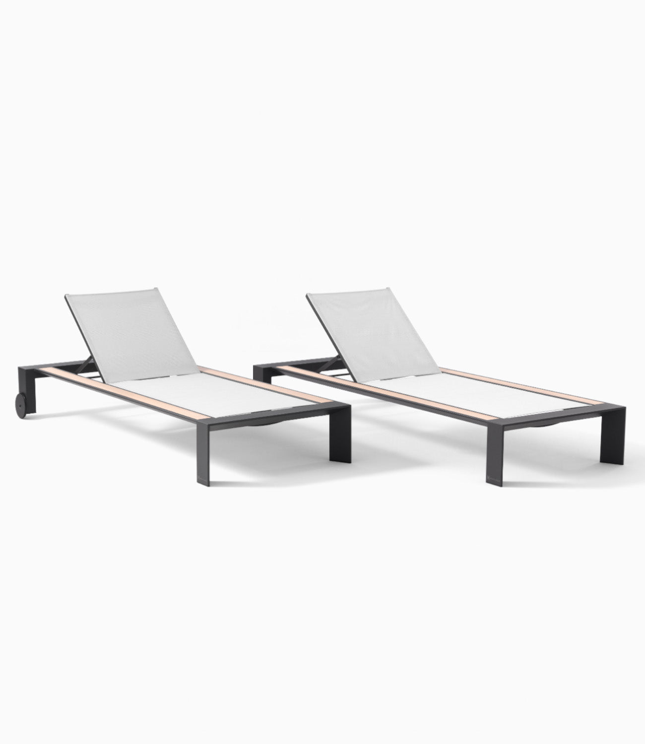 The stackable chaise lounges are complemented by the ease of mobility provided by the large wheels. Making storage compact and effortless.