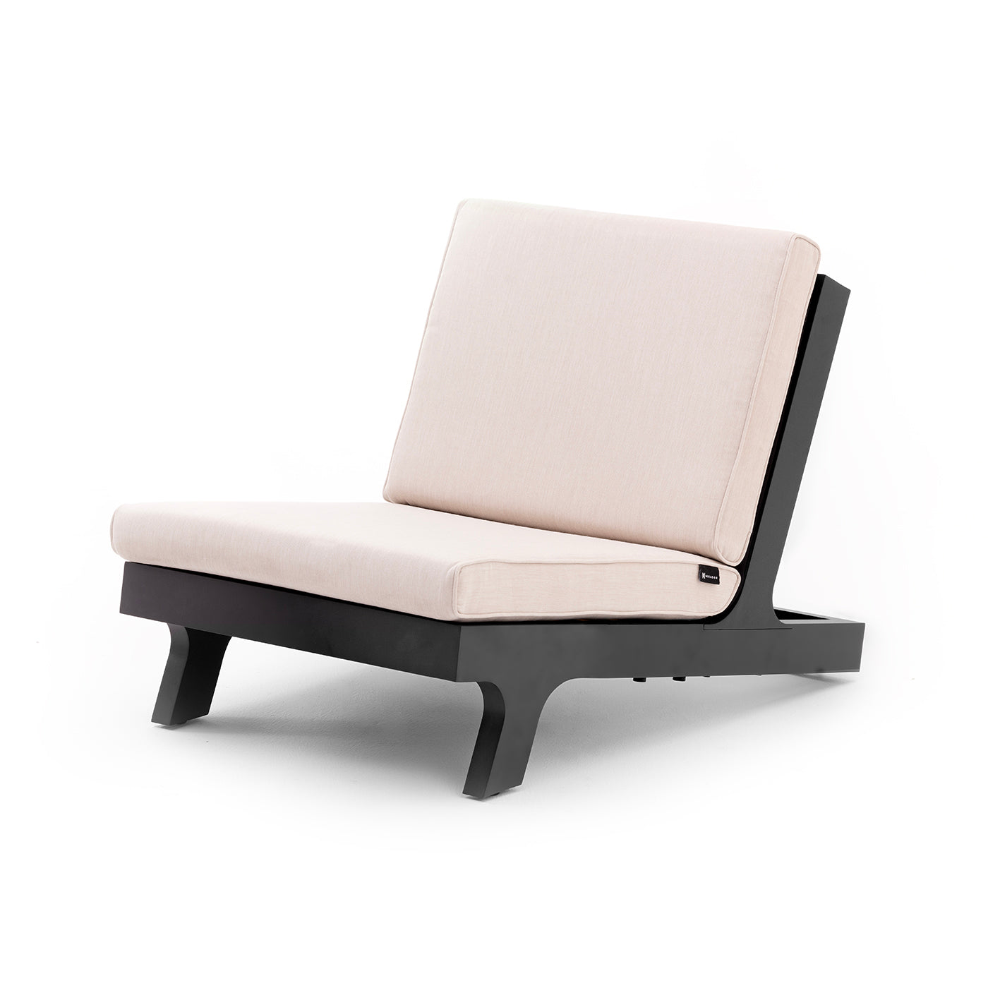 Elevate your outdoor experience with the Mirador Sanibel 3-piece seating set for perfect outdoor lounging. Crafted from durable, eco-friendly aluminum with wood-look accents, the chairs features a signature slanted backrest for optimal comfort and relaxation. Lush, 4" thick cushions feature Sunbrella®, stain and water-proof fabric, ensuring years of worry-free enjoyment. The set with its rust-free aluminum construction can be configured to make a 2-seat sofa for multiple comfort options. The durable Takasho wood-look finish gives the look and feel of real wood without the hassle and upkeep. The Tiger Drylac® powder coating is corrosion and scratch resistant for long lasting enjoyment.