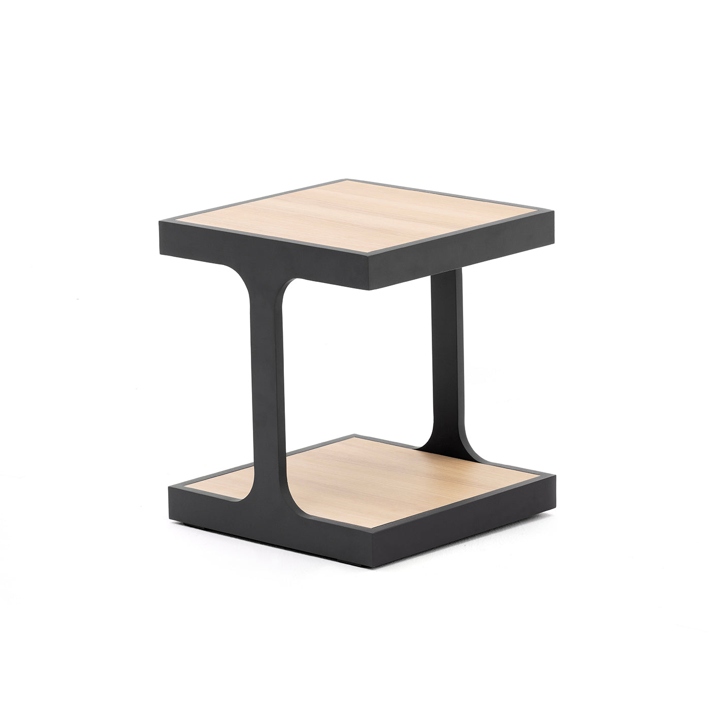 The set includes a two-tiered side table, effectively expanding the available surface area while conserving space.